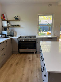 This Kitchen that we completed for our client was made out of Folkstone Grey cupboards with a Petrol Blue Island.